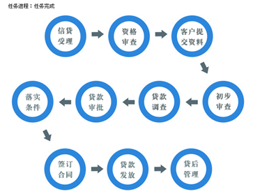 實訓主體分五(wu)類流程(cheng)(cheng):短期(qi)貸(dai)(dai)款、長期(qi)貸(dai)(dai)款、票據貼(tie)現、個人住房抵(di)押貸(dai)(dai)款、個人汽車消費貸(dai)(dai)款。提供(gong)靈活的業務(wu)流程(cheng)(cheng)控制,包括信貸(dai)(dai)受理、資格(ge)審查、貸(dai)(dai)款調查、貸(dai)(dai)款審批、落(luo)實條件、簽訂合同、貸(dai)(dai)款發(fa)放、貸(dai)(dai)后(hou)管理等步驟。