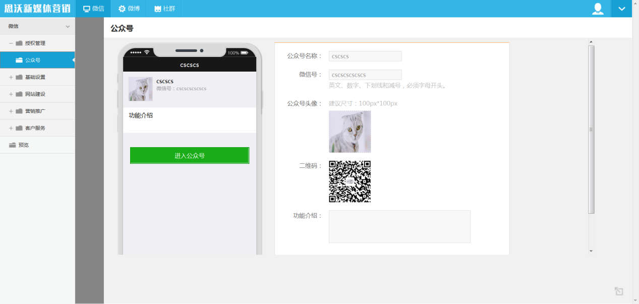 思沃(wo)新(xin)媒(mei)體(ti)營(ying)銷(xiao)(xiao)模擬實訓平臺系統(tong)模擬了真實的新(xin)媒(mei)體(ti)營(ying)銷(xiao)(xiao)環境,提供包(bao)括:微(wei)信營(ying)銷(xiao)(xiao)、微(wei)博營(ying)銷(xiao)(xiao)和(he)社(she)群(qun)營(ying)銷(xiao)(xiao),用(yong)戶根據該教(jiao)學軟件系統(tong)提供的營(ying)銷(xiao)(xiao)模塊進行(xing)營(ying)銷(xiao)(xiao)操作,新(xin)媒(mei)體(ti)營(ying)銷(xiao)(xiao)主要以微(wei)信公眾號,微(wei)博,社(she)群(qun)這(zhe)三種營(ying)銷(xiao)(xiao)模式為主進行(xing)實訓。