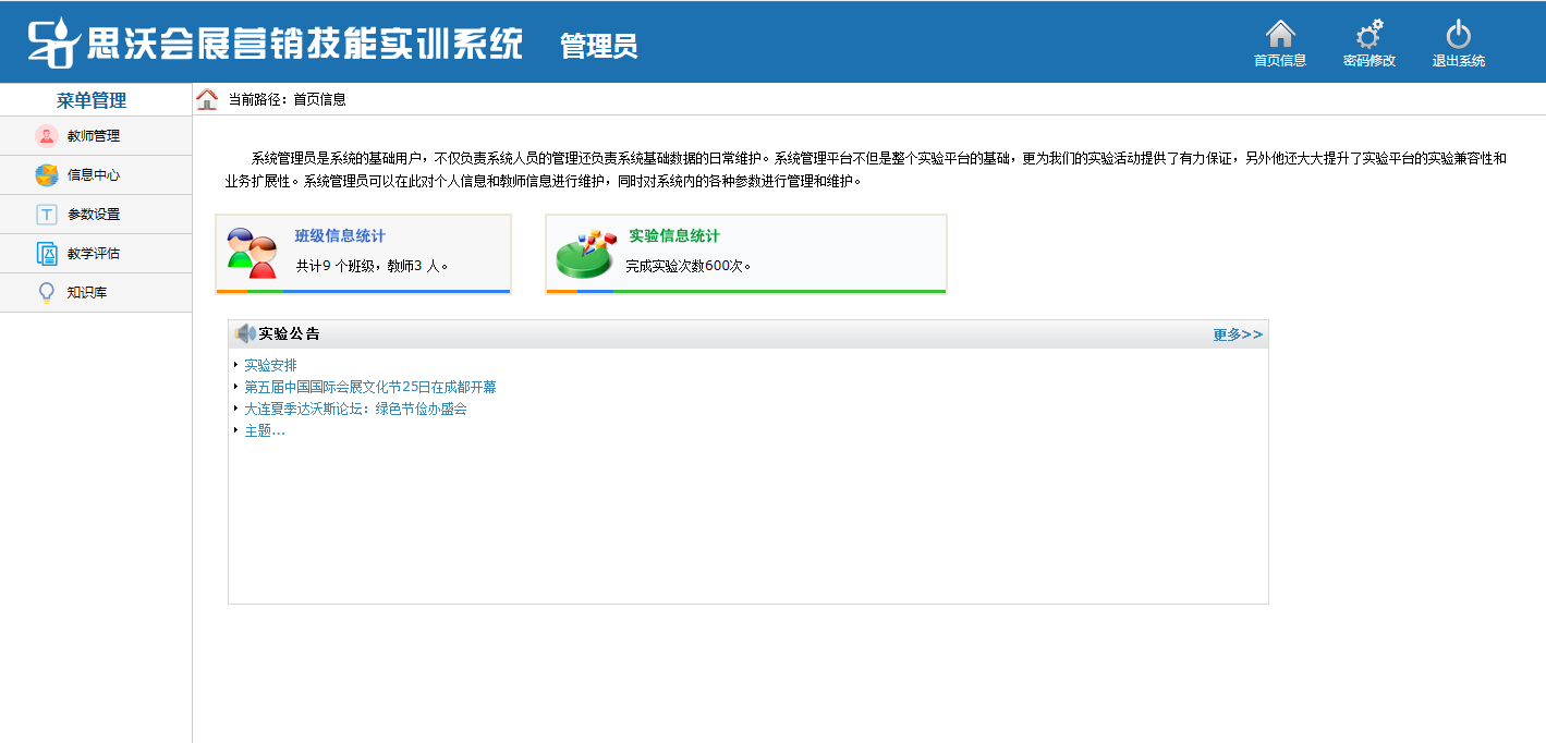 管理員包(bao)含(教室管理,信息中(zhong)心,參數設置,教學(xue)評(ping)估,知識庫等模塊(kuai))