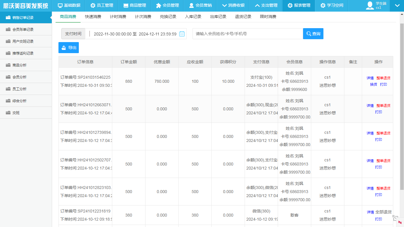 思沃美(mei)容美(mei)發(fa)模(mo)擬(ni)實訓系(xi)(xi)統分為(wei)管理員、教(jiao)師(shi)、學生(sheng)三種角色,教(jiao)師(shi)設置基礎數據及(ji)考核(he)項分數,學生(sheng)真實模(mo)擬(ni)美(mei)容美(mei)發(fa)實際操(cao)作功(gong)能(neng),系(xi)(xi)統自動給出評分,生(sheng)成考核(he)成績,供教(jiao)師(shi)進(jin)行成績導出,教(jiao)師(shi)還(huan)可跳轉到學生(sheng)端查看學生(sheng)的(de)操(cao)作情(qing)況。 系(xi)(xi)統涵蓋店鋪員工、商品、會員、營銷、消費(fei)收(shou)銀、費(fei)用支出、報(bao)表(biao)統計等(deng)主(zhu)要(yao)功(gong)能(neng),還(huan)提供了豐富的(de)美(mei)容美(mei)發(fa)資源庫及(ji)在線考試等(deng)功(gong)能(neng)。